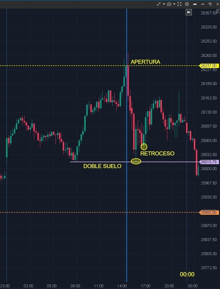Este es mi pan de cada día. Se basa en operar a favor de la intención que muestra el mercado después de la apertura americana. Es simple, lógico y efectivo.