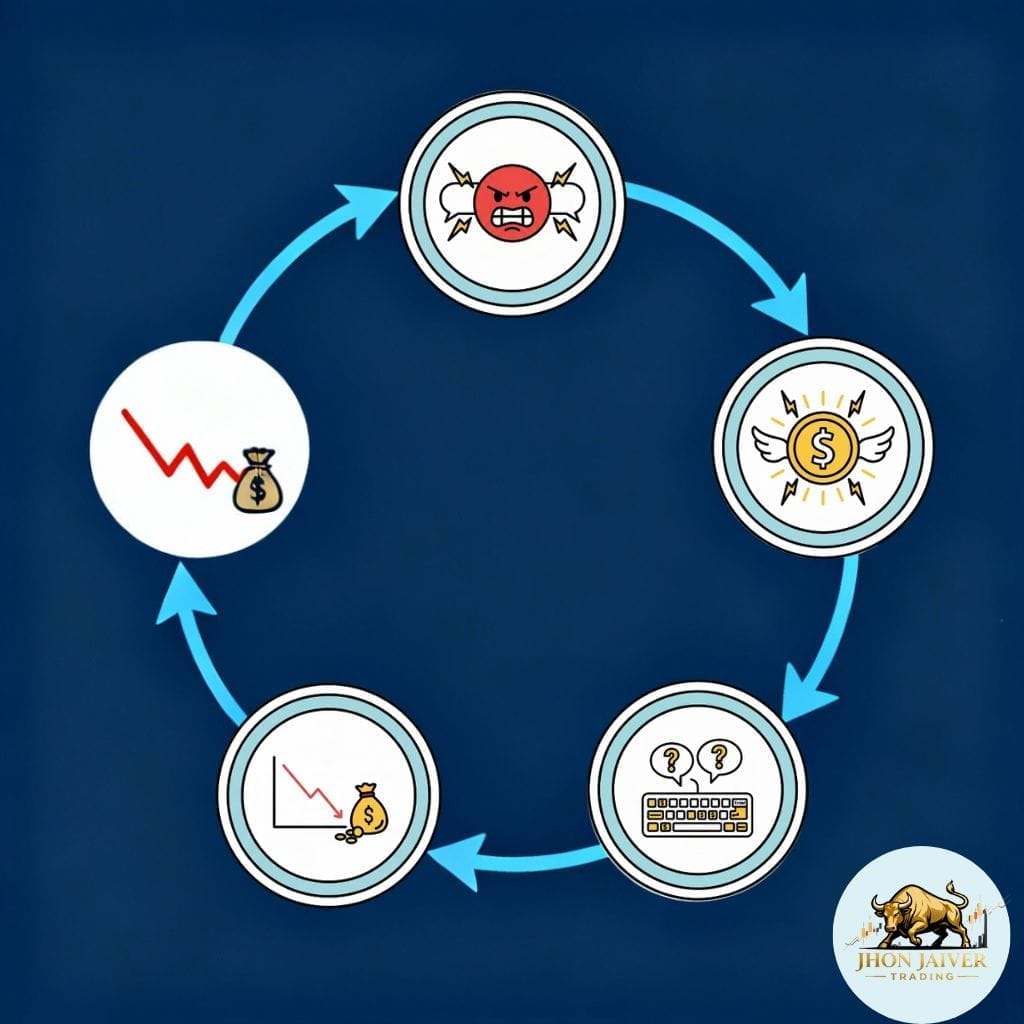 Diagrama - Pérdida -> Frustración -> Impulso de "Recuperar" -> "Trade" sin Plan -> Pérdida Mayor