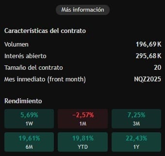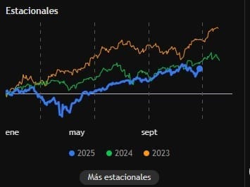 Además, tiene paneles visuales que permiten ver otro tipo de indicadores ("Datos Técnicos", "Estacionales" y "Rendimiento"). Aunque no sean decisivos para mi gatillo de entrada diario, no dejan de dar información extra muy importante a largo plazo para definir mi sesgo: ¿Busco largos (compras) o cortos (ventas) esta semana?